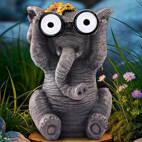 Click for More Images Premium Quality Elephant With Solar Lights: The Naughty Elephant statues hold a solar lantern telephoto, which casts a warm and welcoming glow. The light mimics a vivid small flame and flashes in the breeze. As the symbol of...