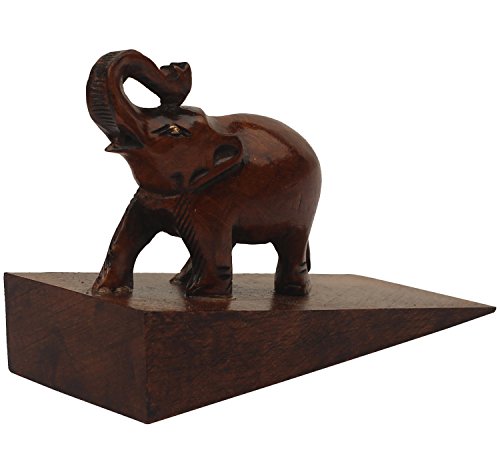 Wood Door Stopper 4.7 Inch - Wooden Elephant Wedge-Style Door Stop - Decorative Trunk Up for Home or Office Use - Brown Color - Door DecorationsElephant door stop is ideal for securing doors open and not slamming shut. Lending a helping hand this...