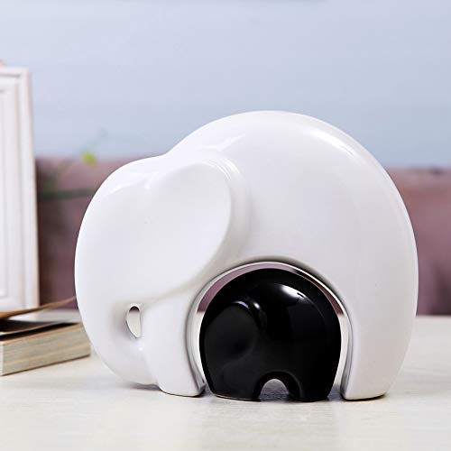 Guo’s Home Decoration Statues Elephants Figurine Sculpture Animal Ornament Ceramic White & Black (Elephant Set E)