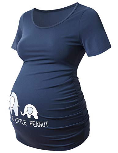 DEBELLY Maternity Casual Shirt Funny Maternity Short Sleeve Tops for Pregnant Women Summer Tops Blue Elephants,Blue Elephants,L