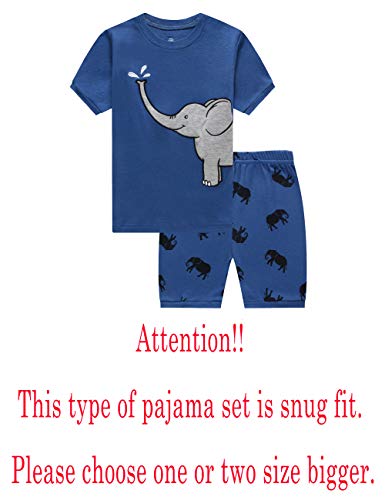 Family Feeling Big Boys Elephant Snug-Fit Pajamas Short Sets 100% Cotton Blue Pjs Clothes Kid 8