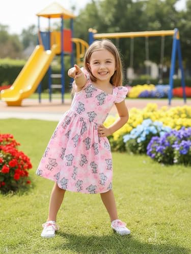 Girls Elephant Dress Summer Ruffle Sleeve Love Letter Print Sundress Kids Birthday Party Outfit Toddler Girl Pink Dresses 18-24 Months