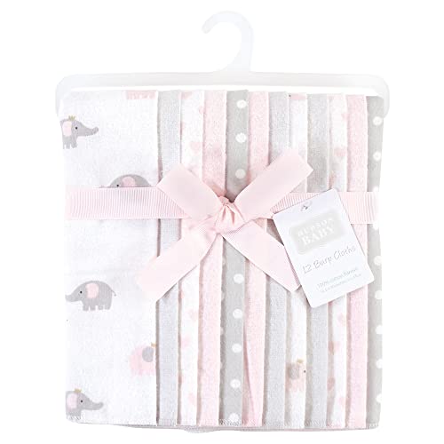 Hudson Baby Unisex Baby Cotton Flannel Burp Cloths Bundle, Pink Gray Elephant, One Size
