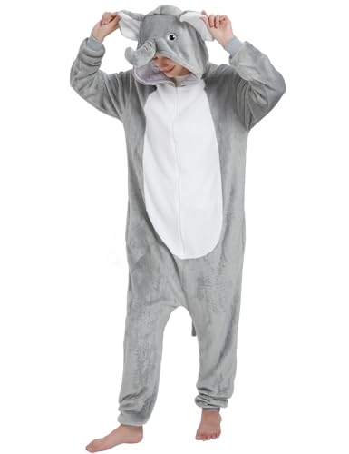 ACOGNA Elephant Adult Onesie Animal One Piece Pajamas for Women Costume Unisex Cosplay Plush Soft Halloween Christmas Sleepwear Gray Medium