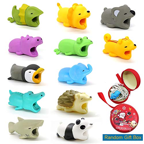 12Pcs Cable Bites, HOMEWE Animal Cable Protectors with Gift Box for Phone Cables (Elephant, Crocodile, Shark, Panda, Hedgehog, Frog, Hippo, Lion, Lizard, Koala, Squirrel, Penguin)