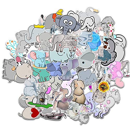 50 Pcs Vinyl Elephant Stickers Waterproof Elephant Sticker Pack for Water Bottle Hydro Flask Laptop Skateboard Luggage Bike Car