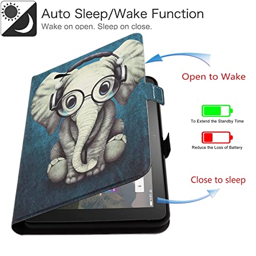 All-New Kindle Fire HD 10 Tablet Case, Fire Tablet 10 Case (11th Generation, 2021 Release), Viclowlpfe Slim Fit Lightweight Leather Smart Tablet Case Cover for Fire HD 10 & 10 Plus, Elephant