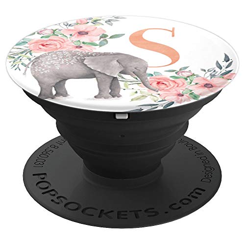 Elephant Flowers Pink Monogram Name Initial Letter S – PopSockets Grip and Stand for Phones and Tablets