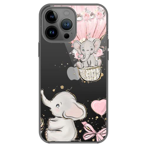 FancyCase iPhone 14 Pro Max Case (6.7inch)-Cute Elephant Design with Balloon Cartoon Animal Pattern Flexible TPU Protective Clear Case Compatible with iPhone 14 Pro Max (Balloon Elephant)