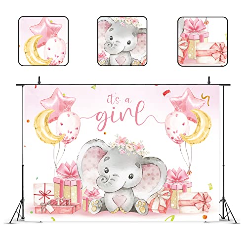 Glawry Elephant Baby Shower Backdrop 7Wx5H Feet It’s A Girl Pink Cute Floral Balloon Moon Star Princess Girl Baby Shower Party Decorations Photography Background Photo Booth Studio