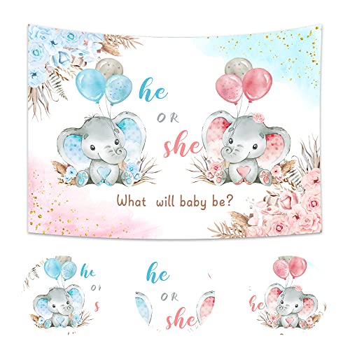 Imirell Boho Elephant Gender Reveal Backdrop 7Wx5H Feet Watercolor Floral Pampas Balloons Pink Blue Boy or Girl He or She Baby Shower Photography Backgrounds Photo Shoot Decor Props Decoration