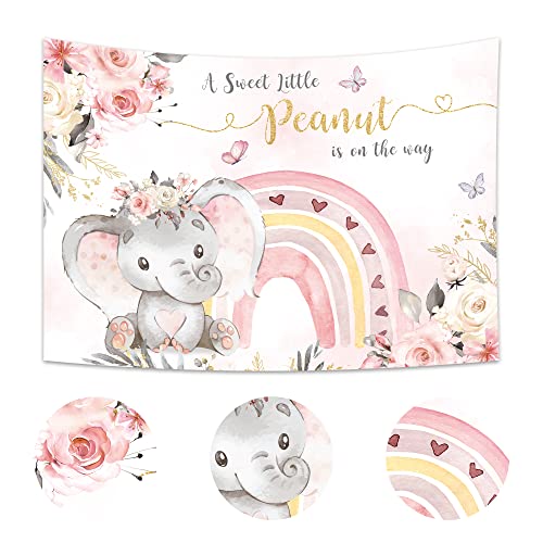 Imirell Elephant Baby Shower Backdrop 7Wx5H Feet A Sweet Little Peanut is on The Way Pink Floral Boho Rainbow Girl Party Decorations Photography Background Cake Table Photo Shoot Decor Props