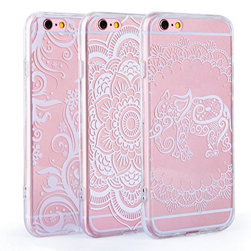 iPhone 6s Case, FiveBox 3-Pack Ultra Slim [Shockproof] Silicone TPU Gel Clear Case Cover, Christmas Tree Flower/ Henna White Floral/ Elephant Pattern Hard Back Protective Case for iPhone 6, iPhone 6s