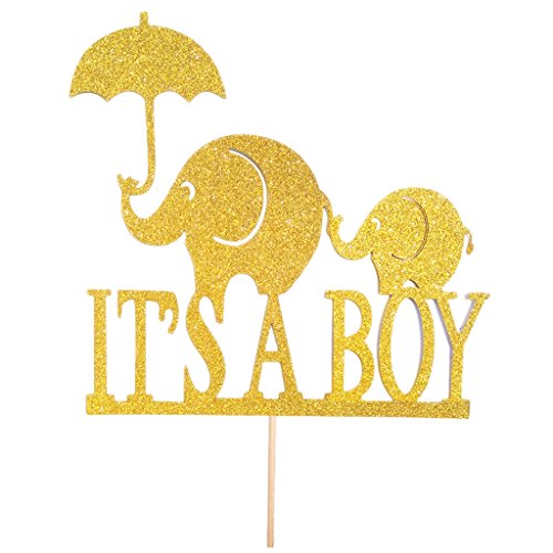 Dovewill 20pcs Glitter Elephant Its a Boy Cake Topper Cupcake Picks Party Baby Shower – Its a boy
