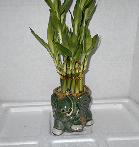 medium Size Elephant Ceramic Vase with 2 Tier 4″ 6″ Quality Lucky Bamboo Plant