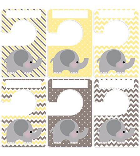 Closet Doodles 6 Clothing Organizers Yellow Gray Elephant Plus 48 Sorting Labels