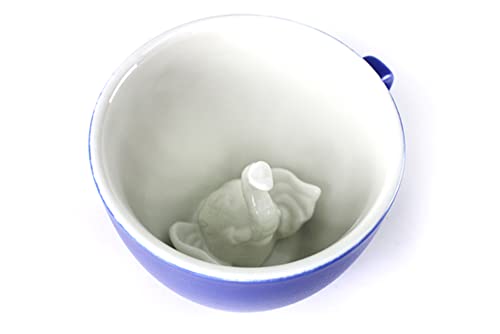 creature cups Elephant Ceramic Cup (11 Ounce, Cobalt Blue) – Hidden Animal Inside – Holiday and Birthday Gift for Coffee & Tea Lovers