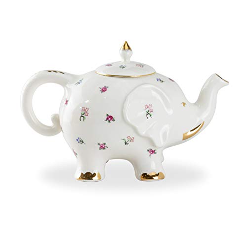 Grace Teaware Fine Porcelain Happy Elephant (3-Piece Tea Set, Petite Floral Spray) with Gold Trim