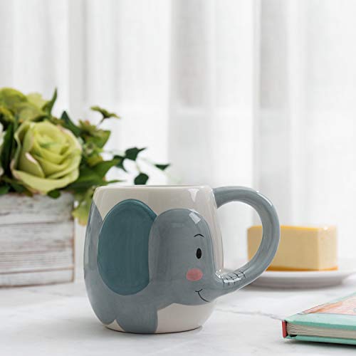 MyGift Elephant Ceramic Coffee Mug, Cute Cartoon Gray Cup with Trunk Handle, Animal Themed Drinkware