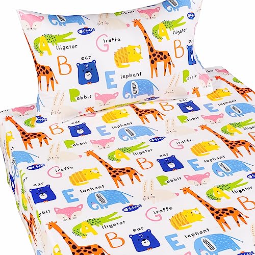 Scientific Sleep Cute Fox Cat Rabbit Bear Giraffe Elephant Animal 100% Cotton Cozy Twin Bed Sheet Set, Flat Sheet & Fitted Sheet & Pillowcase Natural Bedding Set (Animals, Twin)
