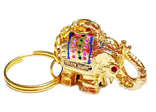Super Lucky Elephant Keychain with Hidden Pill Box Charm Locket Gold Blue