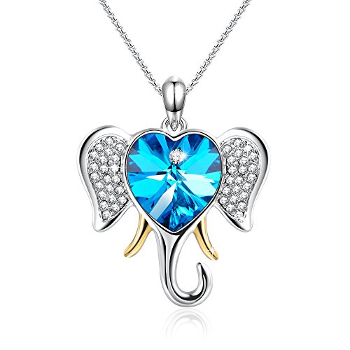 Angelady Lucky Elephant Pendant Animal Necklace With Blue Heart Shape Swarovski Crystal Wife Girlfriend Birthday Party Jewelry Gift