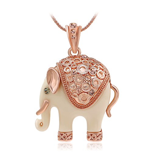 Kemstone Rose Gold Tone Ivory Elephant Pendant Necklace Women Jewelry, 15″+1.77″ Extender