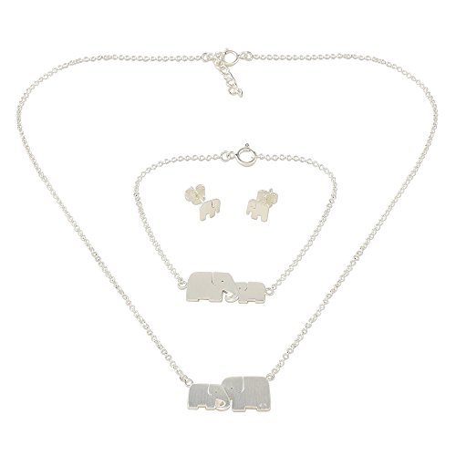 About this item: Designed by Thai artisan Jantana, this jewelry set features a pendant necklace, a pendant bracelet, and two stud earrings crafted from sterling silver. Each piece in this set features the image of lovely elephants. In the pendants of the necklace and the bracelet, the trunks of the elephants fuse together for a beautiful design that celebrates unity.