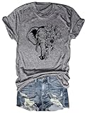 Women’s Summer Elephant Printed T-Shirt Funny Cute Animal Graphic Tees Tops(Grey,L)