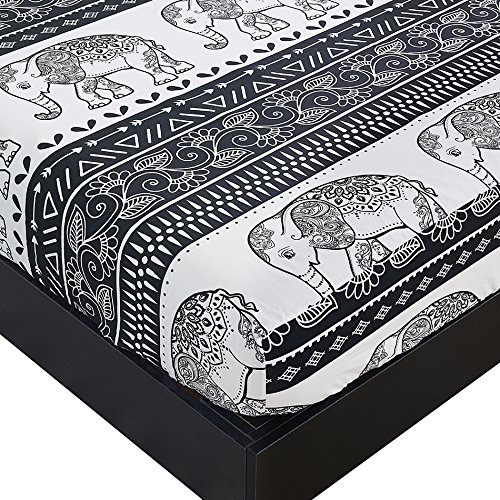Vaulia Soft Microfiber Sheets, Elephant Printed Pattern, Black/White Queen Size, 3-Piece Set (1 Fitted Sheet, 2 Pillowcases)
