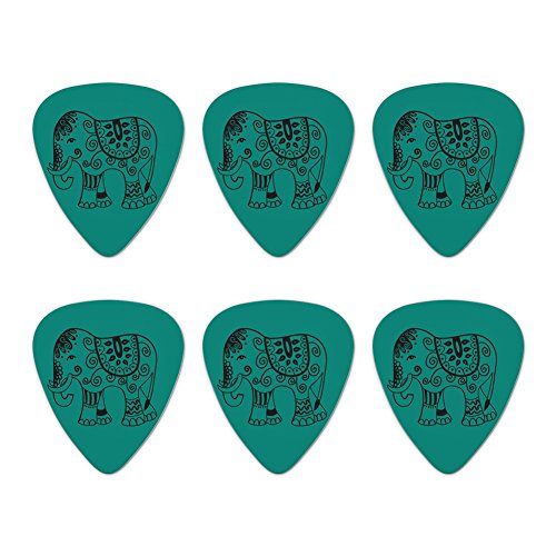 Painted Elephant India Black on Teal Novelty Guitar Picks Medium Gauge – Set of 6