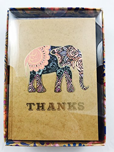 Brightly colored elephant with gold foil trim blank thank you card. Has co
