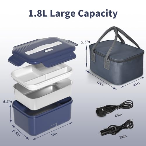 Click for More Images Large Capacity of 1.8L --- Our heated lunch box capacity is upgraded to 1.8L, up 20% from 1.5L. You can fit more foods like meat, veggies, and staples, great for big - eaters and physical workers to satisfy their hunger....