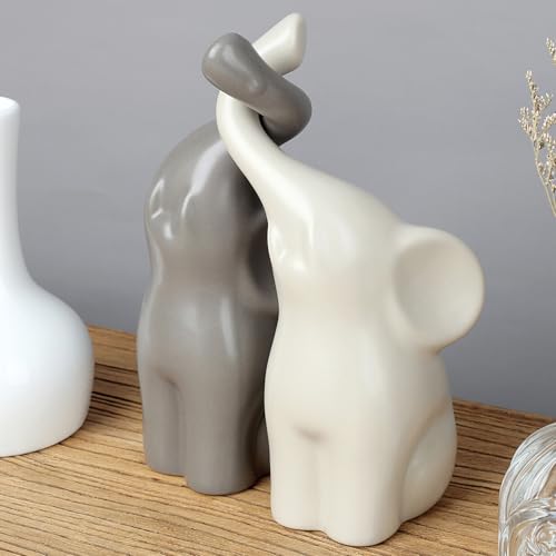 Click for More Images ?Loving Elephant Home Decor?This elegant pair features two lovingly intertwined elephant figurines, finished in a smooth, modern ceramic. They symbolize a strong, lasting bond, making them a perfect emblem of love and...