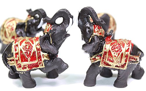 Take your good luck home~ Set of 4 Adorable Black Thai Elephant Collection.Color: Black/Gold Size: 2" eachIt symbolizes power, wisdom, strength, fertility, protection of the home!!Black elephants with the trunks facing upwards to represent...