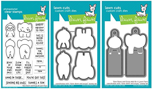 Lawn Fawn – Slow Down and Enjoy – Elephant & Sloth Stamp, Die and Add-On Set – 3 Item Bundle