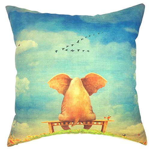 YOUR SMILE Lonely Elephant Cotton Linen Square Decorative Throw Pillow Case Cushion Cover 18×18 Inch(44CM44CM) (Color#209)