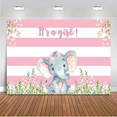 Mehofoto Girl Elephant Baby Shower Backdrop Pink Flower Elephant Photography Background 7x5ft Vinyl Elephant Baby Shower Party Banner Backdrops