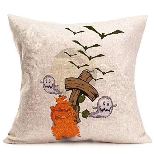 Kimloog Happy Halloween Ghosts Pumpkin Print Cotton Linen Throw Pillow Cases 18″x18″ Sofa Cushion Cover Home Decor Zipper Pillowcase (D)