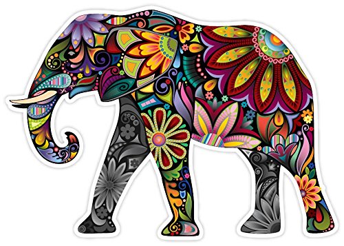 Red Purple Mandala Elephant Cartoon Pen Art Vinyl Decal Sticker (8″ Wide)