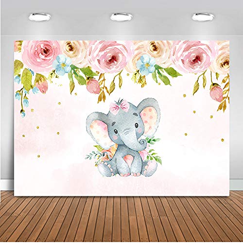 Mehofoto Elephant Baby Shower Backdrop Pink Elephant Floral Birthday Background 7x5ft Vinyl Baby Girls Baby Shower Birthday Party Banner Backdrops ?Features: 1. Digital computer-printed backdrop. Light weight and durable. 2. Vinyl cloth is not...