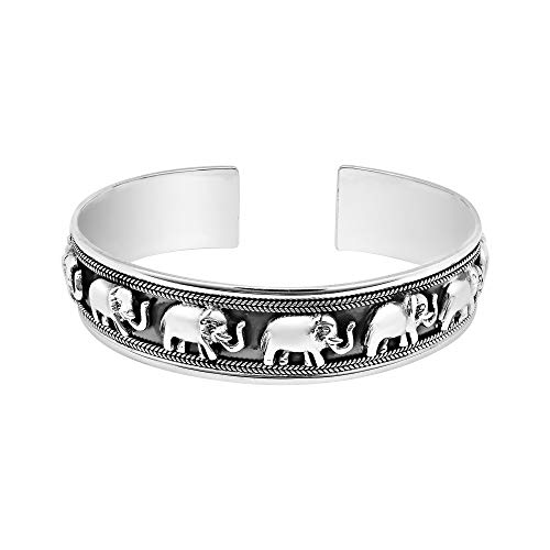 Local artisan Kamakhya showcases his craftsmanship with this exotic .925 sterling silver cuff bracelet. The bracelet features sterling silver beads and Thai elephant dangles which gives this piece a trendy and unique quality. PLEASE NOTE: The...