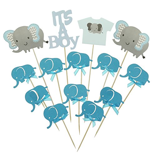 14 Counts Blue Navy Elephant Cake Cupcake Topper Picks For It's A Boy Baby Shower Birthday Themed Party Decorations Supplies by Shxstore Baby Shower Decorations Specification Description: MATERIALS: Paper and toothpick COLOUR: Blue ...