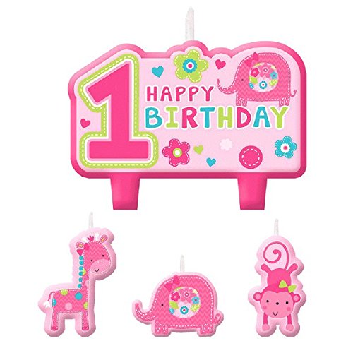 Add the finishing touch to your little one's 1st birthday cake with One Wild Girl Birthday Candle Set! These pink 1st birthday candles will ignite joy for your party goers. Each package includes 4 mini molded candles, featuring a giraffe, an...