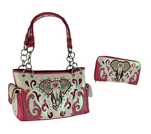 Elephant is a very symbolic animal. For many, it symbolizes good luck, fortune and strength. Make your best look with this beautiful handbag and wallet set. Made from high quality faux leather and fabric lining decorated with metal studs...