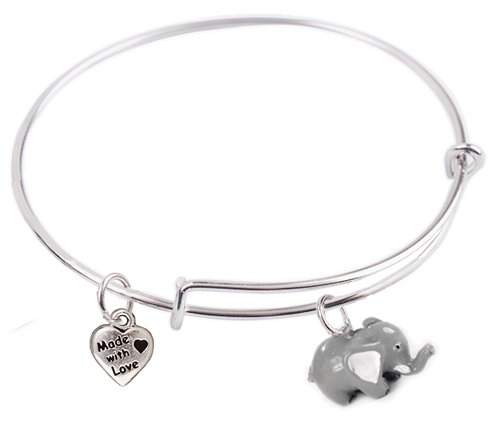 65mm, Expandable Bangle bracelet with 3-D Resin Baby Elephant and Heart Charm, Qty:13-D Hand Painted Baby Elephant Charm Size: approx. 16 x 18 mmMade with Love, heart charm size :9 x 9mmExpandable Bangle bracelet size: 65mm (2.5 inches)...
