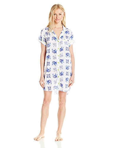 Lightweight sleep shirt with button-up front and allover pattern print An allover print highlights this ultra-lightweight sleep shirt featuring notched lapels with contrasting buttons and piping.High/low with rounded shirttail hem in backPatch...