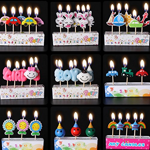 These cute candles are made of paraffins,plase store in cool,dry place in case of soften.This candles so suit for children birthday cake decoration that very popular with children and the youth.Cartoon candles will be kids'fevorite party...