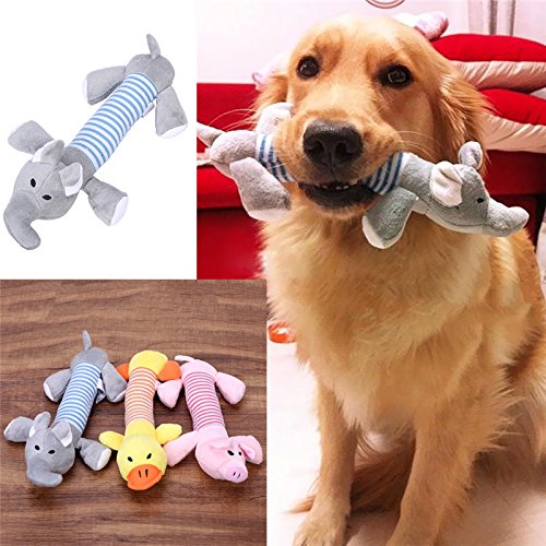 Material: Plush Model: Pig, Duck, Elephant Color: Pink, Yellow, Gray Package includes: 1 x Pet Toy Model: Pig, Duck, Elephant;Color: Pink, Yellow, GrayCute sound when squeezed, durable to squeeze. Squeeze to relax and release stress. Great for...