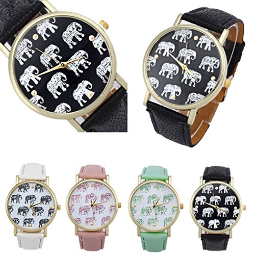 Bluelans® Fashion Women's Quartz Wrist Watch with Coloful Elephant Decor Dial and Faux Leather Strap Stylish womens watch features coloful elephant decoration dial and gold tone caseFaux leather strap, comfortable to wearCase Diameter: 3.8cm/...